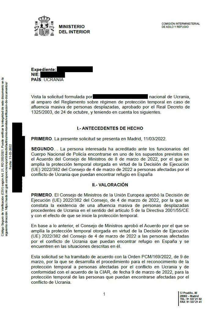 El Gobierno se ha comprometido a resolver estas solicitudes en 24 horas desde su presentación, remitiendo por medios electrónicos, correo postal o comparecencia en comisaría o centros de acogida la notificación de la RESOLUCIÓN DE CONCESIÓN DE PROTECCIÓN TEMPORAL CON PERMISO DE RESIDENCIA Y TRABAJO