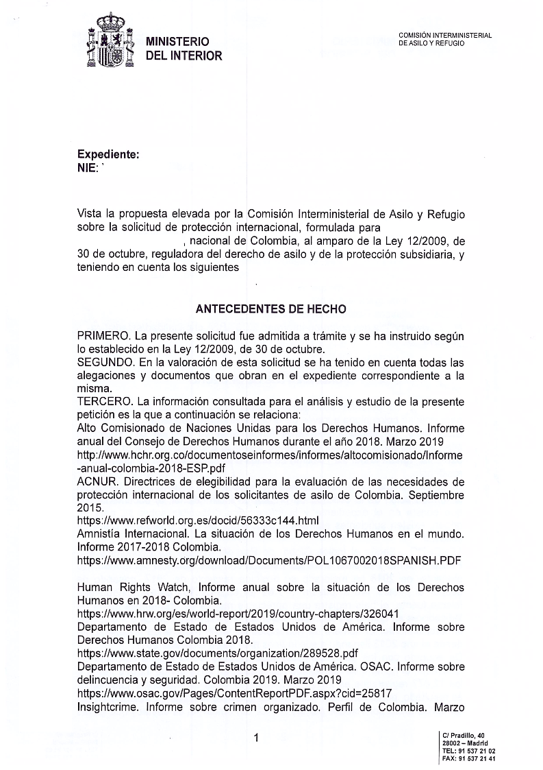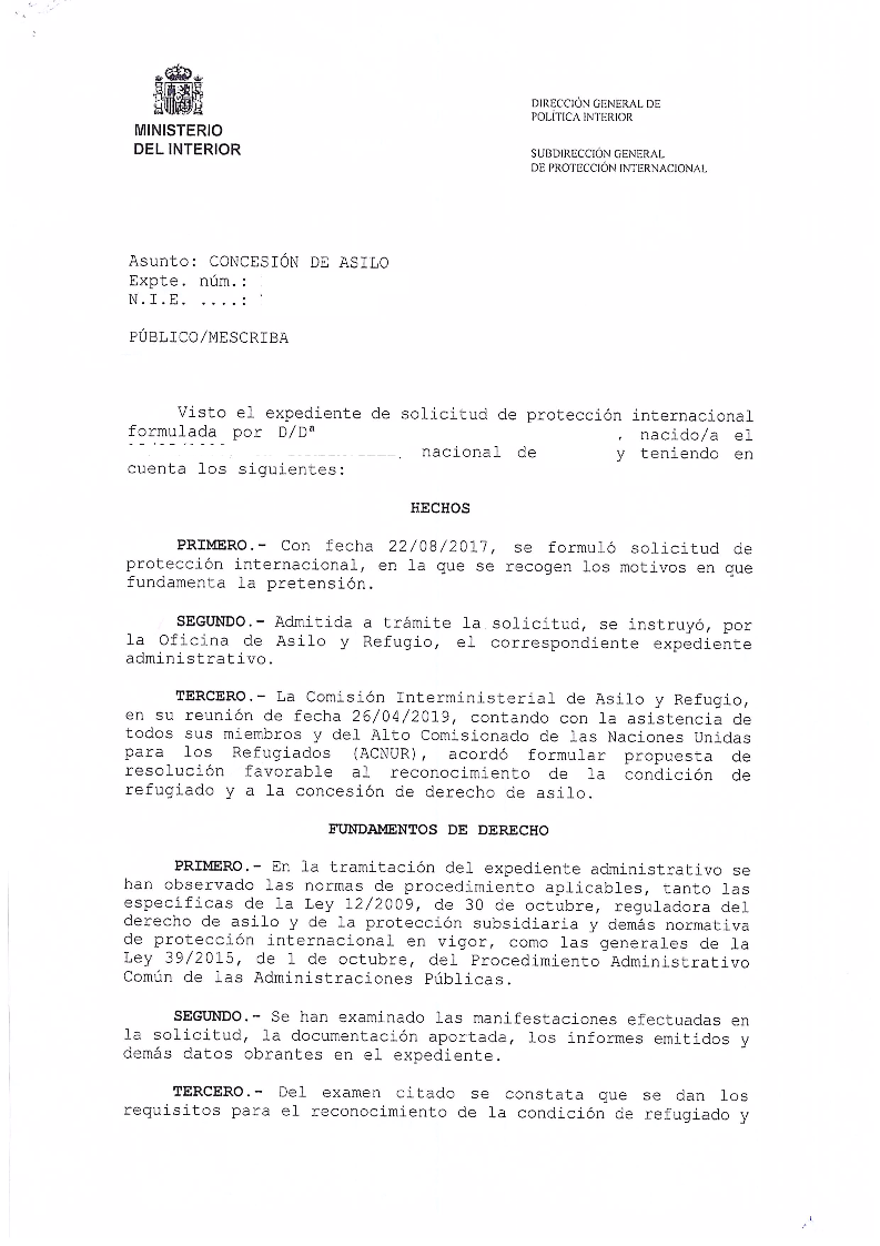 En este documento figurará el Número de Identificación de Extranjero (NIE) asignado y un Nº de Expediente de Asilo (nº OAR) que identificará el caso de asilo ante la Administración.