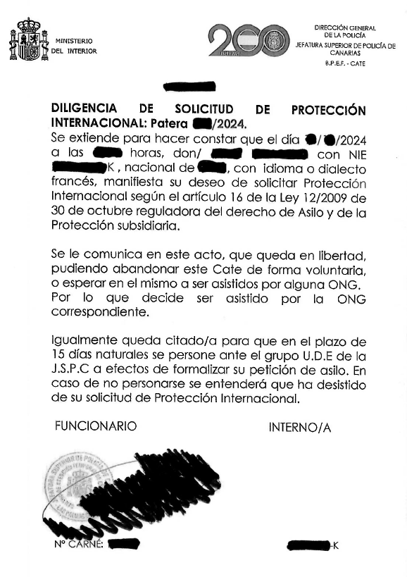 Especialmente desde la STS nº1772/2024, de 6 de noviembre la Policía Nacional ha empezado de forma más sistemática a facilitar la conocida como «Diligencia de manifestación» dirigida a aquellas personas que manifiestan ante autoridades policiales de extranjería y/o fronteras su intención de solicitar protección internacional pero que todavía no la han registrado de forma efectiva.